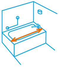 左図のように、バスタブの長手方向を測ってください。 ※浴槽の短手方向は700~800mmを想定しています。800mm以上は別途見積となります。 |