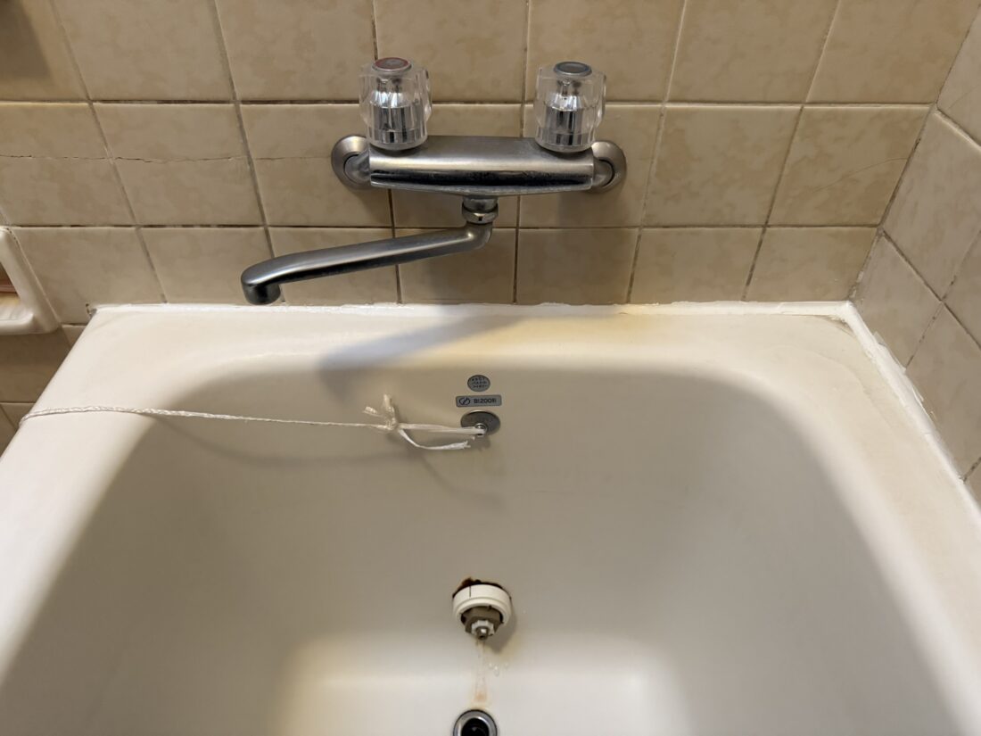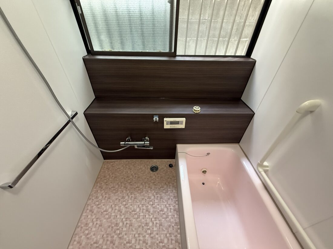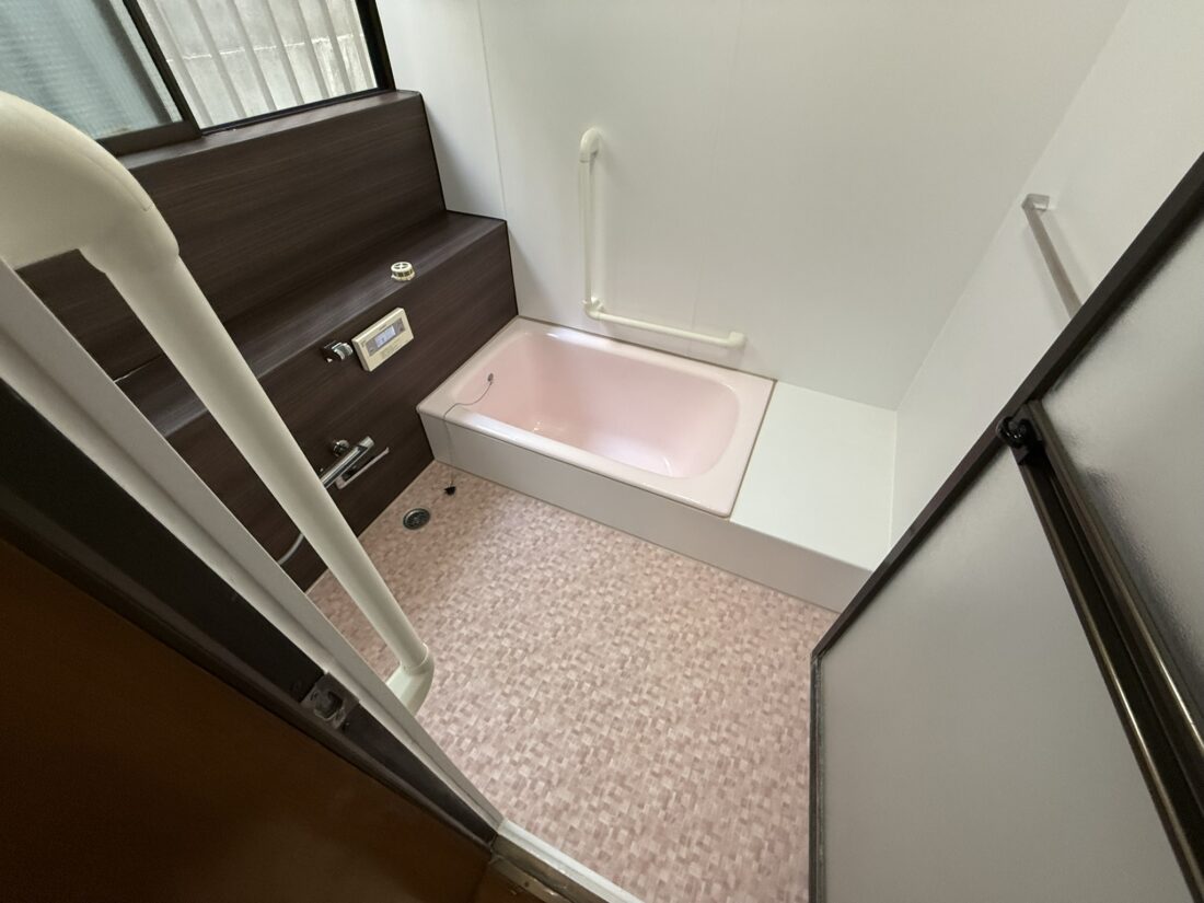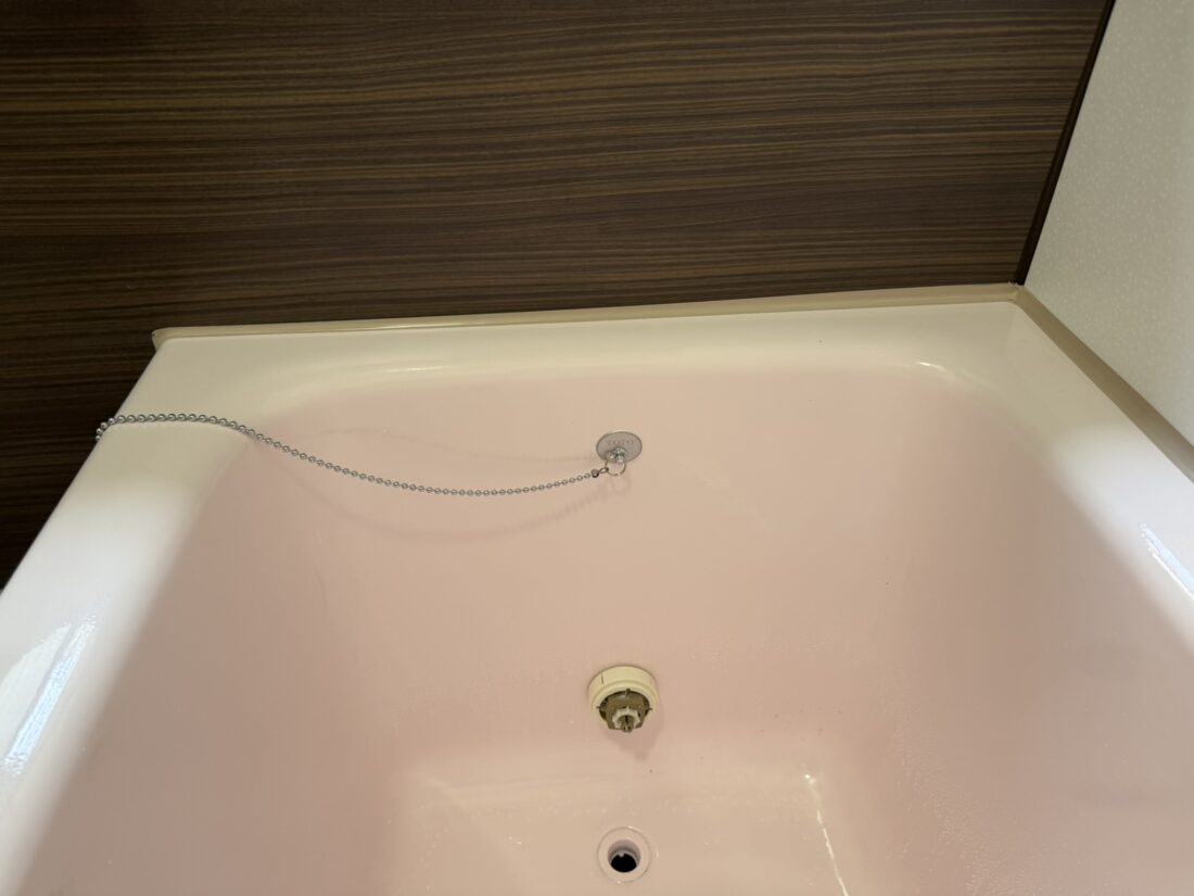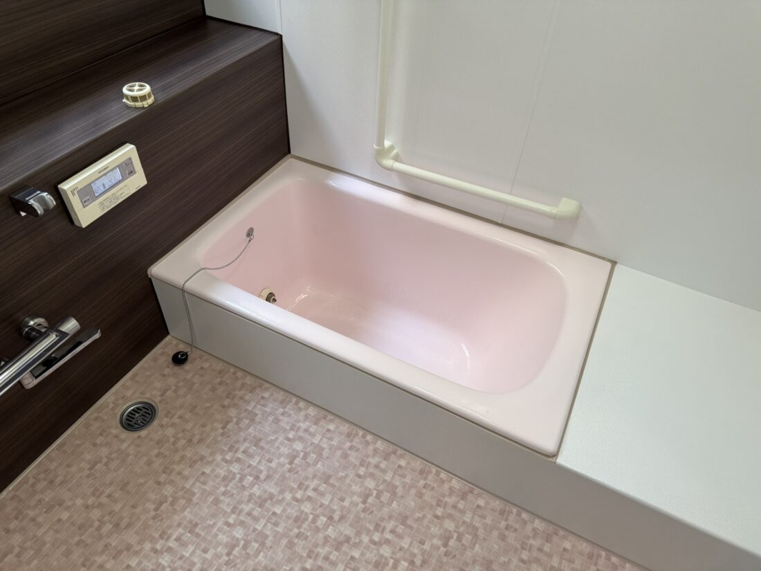 バスタブは再生塗装し淡いピンク色で輝きも取り戻し